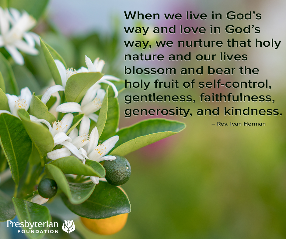 nuestras vidas florecen y dan el fruto santo del autocontrol, la mansedumbre, la fidelidad,