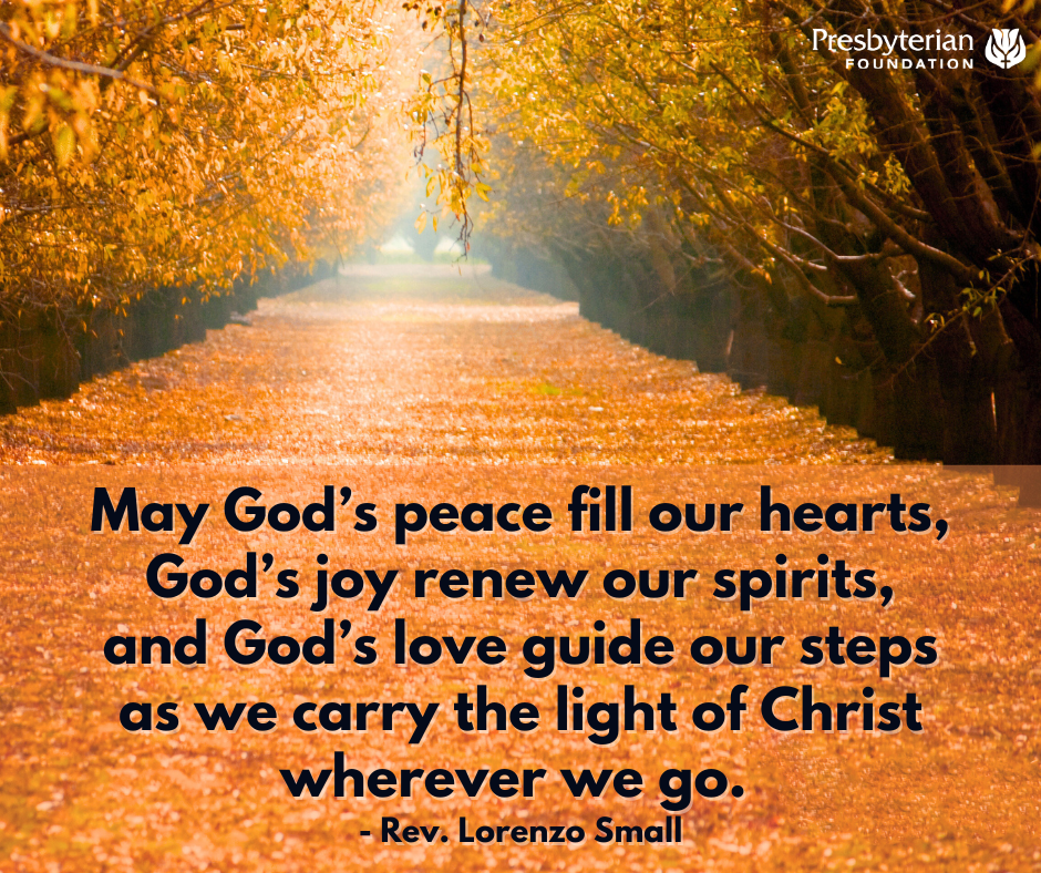 이제 우리가 다시 만날 때까지 성부, 성자, 성령의 달콤한 친교가 우리 모두와 함께 쉬고, 다스리고, 거하시기를 기원합니다. 하나님의 평화가 우리의 마음을 채우고, 하나님의 기쁨이 우리의 영혼을 새롭게 하며, 하나님의 사랑이 우리가 어디를 가든 그리스도의 빛을 들고 가는 우리의 발걸음을 인도하길 바랍니다. 아멘.