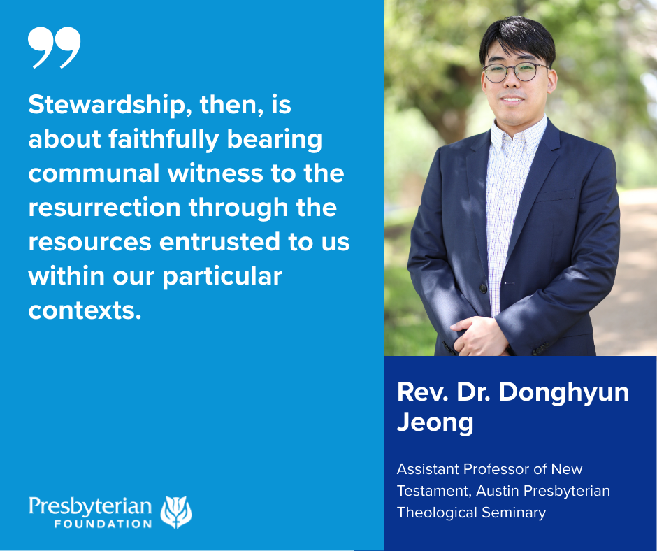 사도행전 2장 42-47절은 답안지를 제공하기보다는 부활이 바로 그 현실을 증거하는 공동체 안에서 청지기 직분에 대한 우리의 이해와 실천을 어떻게 형성하는지 질문하도록 우리를 초대합니다. 그러므로 청지기는 우리의 특정한 상황 속에서 우리에게 맡겨진 자원을 통해 부활을 공동체적으로 신실하게 증거하는 것입니다.