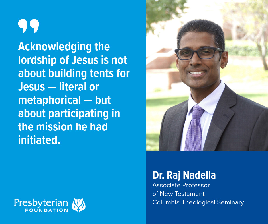 Acknowledging the lordship of Jesus is not about building tents for Jesus — literal or metaphorical — but about participating in the mission he had initiated.